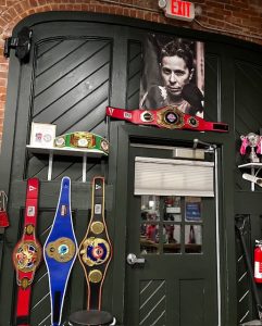 But with brand-new knees and a stronger core, I knew I had to find another place to box. I went through the tedious search process again with my same criteria and found a boxing gym nearby called On the Ropes Boxing and Fitness in Warwick RI. I set up my first lesson and the first thing I noticed when I walked in were championship belts lining the walls—and photos of female boxers. Turns out the gym is owned by four women: four unassuming, inspiring, and extremely bad-ass champion boxers. Women who support and empower each other and serve as role models for their students. It immediately felt like home.